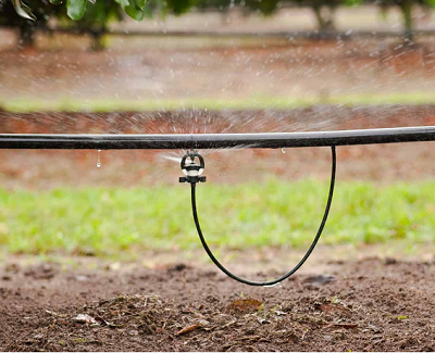 Bên cạnh giải pháp sử dụng dây tưới nhỏ giọt thì béc tưới phun mưa luôn là một giải pháp tốt để tưới cho cây ăn trái, đặc biệt là các loại cây như bơ, sầu riêng, bưởi, cam, quýt… Giống như các loại dây nhỏ giọt, các béc tưới phun mưa phải được bù áp (PC). Các béc tưới này có thể được đặt trên cọc hoặc chúng có thể được treo từ ống LDPE. Lưu ý là không nên sử dụng các béc tưới phun mưa trên cao vì canxi cacbonat sẽ khiến trái cây của bạn bị mất màu làm giảm đánh giá chất lượng quả.